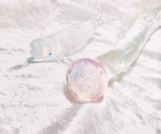 天然石のプレジャーワンドをマザーアースからの神秘の贈り物とするなら、このガラスアートシリーズは人が生み出す洗練された美しさ、エレガンスをテーマとしています。この世界には神様がもともと与えてくれている自然の美しさと、人が長い間かけて技を磨き生み出す芸術という2つの美が存在します。