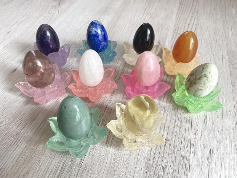 まるでお花畑のようにカラフルなこの台座にエッグをおいて飾ることで